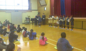 今日の児童朝礼、いつもながらの美しい「今月の歌」りあと、保健給食委員会から「ハンカチ調べ」の表彰があり、1年生が1位の表彰を受けました。